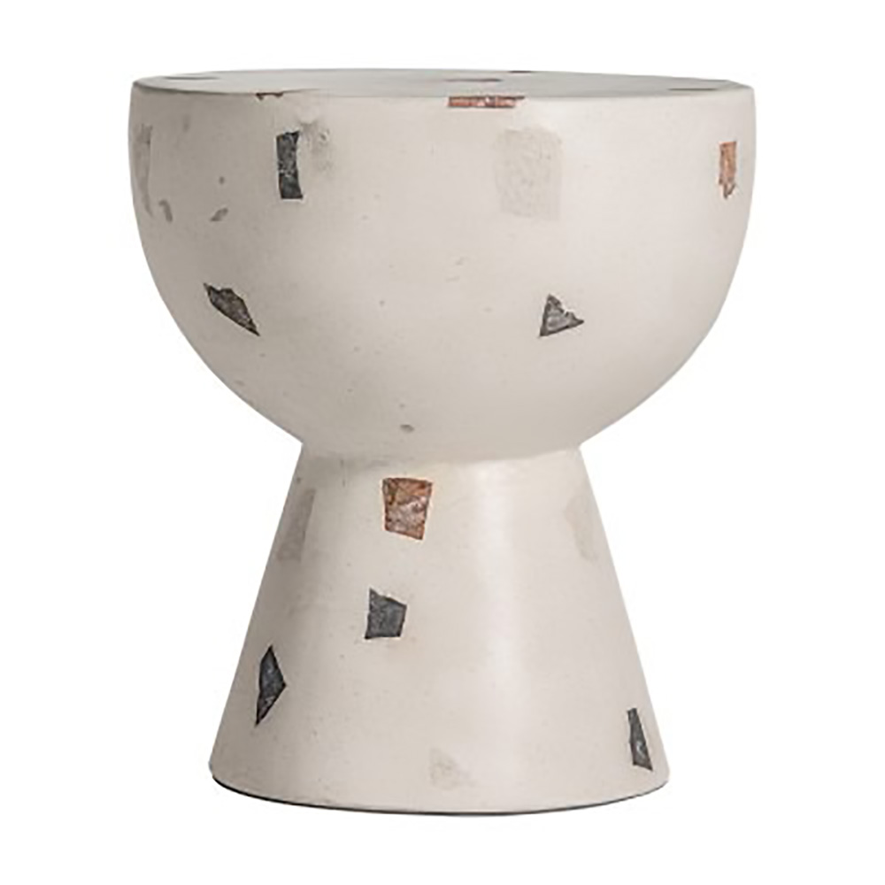 Mesa auxiliar massa, de estilo contemporáneo. Fabricado en terrazo, en color blanco.